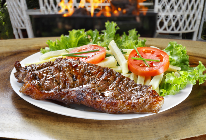Dish with vegetables and roasted Steak meat